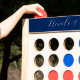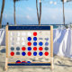 A simple and chic personalized wedding fast four lawn game. This custom outdoor game features a modern calligraphy script font in navy blue and white. Add your names and wedding date for a personalized outdoor reception game for your special day.