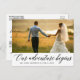 Elegant Modern Calligraphy Our Adventure Begins Wedding Photo Thank You Postcard