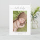 Announce the arrival of your precious miracle with this calligraphy photo hello baby announcement card. The design features a classic calligraphy script in white, which reads " hello baby", a clean white space to add your first baby's portrait, name, birthdate, and a thank you message.