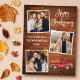 Modern Fun Calligraphy Script Happy Thanksgiving 3 Photo Collage Holiday Postcard includes Orange Plaid Craft Tape and Watercolor Vintage Red Truck with Pumpkins. Rustic Country Wood.