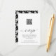 Elegant calligraphy design with a QR code placeholder on the front and a black and white floral pattern on the backside.