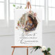 Quinceanera photo welcome sign with elegant calligraphy and watercolor wildflowers