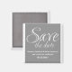 Calligraphy Save the Date Magnet in gray and white with a sophisticated typography design. This elegant and chic save the date magnet is easy to customize with your wedding details. For more customization options, click on the Customize It button.