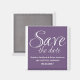 Calligraphy Save the Date Magnet in purple and white with a sophisticated typography design. This elegant and chic save the date magnet is easy to customize with your wedding details. For more customization options, click on the Customize It button.