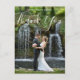Stylish wedding thank you post card template featuring a photo on the front, "Thank You" in a modern white script on the font, and custom text thank you message.