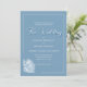 Calligraphy Script Dusty Blue White Floral Wedding Invitation