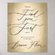 Stylish Black Calligraphy Script On Faux Gold Foil Please Find Your Seat Here, But Your Place Is On The Dance Floor Wedding Sign.