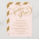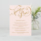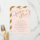 NOTE: This is a flat printed image, there is no actual glitter, gold metallic ink or layers. COLOR PALETTE: Gold metallic look and blush shell pink DESIGN COLLECTION: A formal dinner wedding reception menu listing the entree choices and dessert. Created using hand lettered script scroll calligraphy by Audrey Jeanne Roberts. The text reads "forever in Love" and has scrolling swirl flourishes to add a touch of modern elegance. On the reverse side is a wide diagonal stripe also in golden glittering sparkle. Your personalized invitation wording can easily be customized with the simple template fields provided. Available in silver and gold glitters with any color background. Just contact us and we'll match your wedding color.