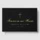 Forever in our hearts memorial funeral guestbook featuring a the text “forever in our hearts" in an elegant calligraphy script font with the name and dates or other custom text below. Above is a simple, elegant cross. Black or custom color background.