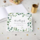 This calligraphy script green foliage wedding guest book is perfect for a simple wedding. The design features watercolor hand-drawn elegant botanical eucalyptus branches and leaves, arranged in beautiful bouquets and geometric patterns.