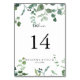 Calligraphy Script Green Foliage Wedding Table Number