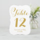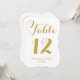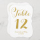 This classy wedding table number features the bride and groom's names in calligraphy inspired script and an elegant bracket frame die cut shape with gold lettering.