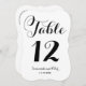 This classy wedding table number features the bride and groom's names in calligraphy inspired script and an elegant bracket frame die cut shape.