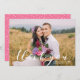 Send custom photo thank you cards to your wedding guests to thank them for helping celebrate your special day! The wedding photo thank you cards feature the words "thank you" in a stylish calligraphy style font, placeholders for your custom text and a photo, and a trendy pink and white dotted pattern on the back of the wedding thank you card. Change the background color by using the "Customize" tool.