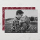 Announce your upcoming nuptials in style with our white calligraphy script save the date cards. The elegant save the dates display your horizontal engagement photo with "Save the Date" in a white calligraphy script. Personalize the front of the photo save the date by adding your names, wedding date, and city/state. The card reverses to display a white foliage pattern with a burgundy background or color of your choice.