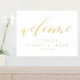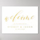 Minimal and elegant welcome real gold foil wedding sign to display as a beautiful guest greeting. The welcome gold foil print design features "Welcome" in a modern gold foil script calligraphy typography. Personalize with the couple's name and wedding date. *Please note: frame not included, only includes the print*