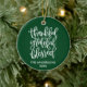 Calligraphy Thankful Grateful Blessed Green Ceramic Ornament