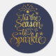 Calligraphy Tis The Season to Sparkle Gold Blue Classic Round Sticker