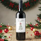 Calligraphy Watercolor Christmas Tree Red Bow Wine Label