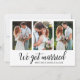 Modern Calligraphy Script We Got Married Wedding 3 Photo Wedding Announcement Card