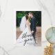 Modern Calligraphy Wedding Bride and Groom Photo Overlay Thank You Card - Black Script