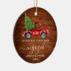 Modern Trendy Calligraphy Script Our First Christmas Engaged Ornament includes Watercolor Vintage Red Truck with Christmas Tree - Rustic Wood Print