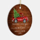 Modern Trendy Calligraphy Script Our First Christmas Married Ornament includes Watercolor Vintage Red Truck with Christmas Tree - Rustic Country Wood Print