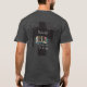 My 11 yo wore adult XL (5’7” 165#). The 8yo is small framed. She wore adult small and tied it in the back. Grandma wore adult large with long sleeve shirt underneath. Tall girl adult medium. Dark haired male adult large. Good quality dark Heather gray, Gildan brand shirt. -it was next up from basic choice and cost about $20 per shirt. Not too thick or thin. Washed and dried well, no major shrinkage. Not see-through. Can wear a bra under it fine. Screen print is just as shown and well done, front and back.