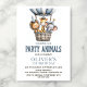Make your little one’s first birthday truly unforgettable with this cute invitation, featuring a lion, giraffe and elephant wearing party hats while enjoying a ride in a hot air balloon. Perfect for inviting friends and loved ones to join in the joy of your baby’s special day, this charming design sets the tone for a sweet and memorable celebration. A variety of paper types and corner styles are available for your unique invitations, along with the option to download if you prefer a digital format.