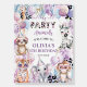 Personalize this vibrant calling all party animals jungle safari birthday party welcome sign foam board with your own wording easily and quickly, simply press the Edit Using Design Tool button to further re-arrange and format the style and placement of the text. Featuring cute jungle animals wearing colorful glasses and party hats, leopard patterned balloons and a vibrant leopard print in purple, pink, blue and green hues. For a seamless and coordinated look, explore our range of matching items available in-store. (c) The Happy Cat Studio