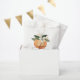 This favor bag features a cute watercolor clementine with sweet white watercolor orange blossom florals and a fun handwritten font with the saying, "little cutie" This paper bag is the perfect addition to your gender neutral citrus fruit themed baby shower or gender reveal party.
