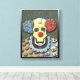 This copy of a "SANZEi" original Color Pointillism Gouache painting is now available on a beautiful canvas display. Callous the Crying Clown was painted by Santos “Sanzei” Lopez as an art project in 1998. This color pointillism / gouache piece features a crying dead clown that is paying for his cruel disregard for society. The metal jaw is symbolic of the cold, rigid disconnect that social media/internet represents, the tear over the skull's face represents regret after the fact. The blue and red colored hair represents the influence of two narcissistic political groups, and the skull-plated, cracked skull represents the constant cover-up and patchwork caused by the years of living within a fractured system. Follow Sanzei @ twitter - SANZEi333