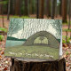 A birthday card for him or her. A serene camping scene with a tent in the woods in front of a lake.