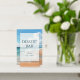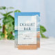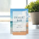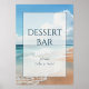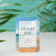 This wedding tabletop sign features a serene beach scene with gentle waves and fluffy clouds, creating a tranquil coastal theme. The color palette includes soft blues, warm beige tones, and subtle whites, evoking a sense of relaxation and leisure. Bold, uppercase serif letters announce "DESSERT BAR," while smaller sans-serif text invites guests to "please take a treat." The design is perfect for adding a whimsical touch to your event, capturing the essence of a peaceful seaside atmosphere.