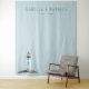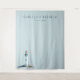 This wedding backdrop features a minimalist design with a serene lighthouse illustration set against a soft light blue background. The layout is vertically oriented, emphasizing simplicity and balance with ample negative space around the central elements. A clean sans-serif font presents customizable text at the top, adding an elegant touch to this modern and tranquil theme. Perfect for creating a calm and sophisticated atmosphere on your special day.