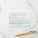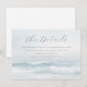 This wedding enclosure card features a serene beach scene with gentle waves, creating a calming oceanic atmosphere. The color palette is dominated by soft blues and whites, evoking a sense of peace and relaxation. Elegant script typography at the top adds sophistication, while classic serif fonts provide clear instructions for accessing more details online. The design's balanced layout and ample negative space ensure readability, making it perfect for guiding guests to further information about the wedding.