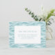 This wedding enclosure card features a serene ocean wave design in soft blues and teals, creating a calming aquatic theme. The layout is modern and minimalist, with a central white square bordered by a thin teal line that houses bold, centered text for easy readability. The digital illustration technique gives the waves a watercolor-like appearance, enhancing the tranquil mood of the design. Perfect for conveying essential details, this card combines elegance with functionality, making it ideal for weddings or any event seeking a sophisticated touch.