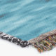 A quality printed throw has its advantages. This is a much finer weave throw than its loopier cousins, and though lighter, it is worth the investment for custom room accessorizing. The back is much prettier than the typical brown, and the fringe on the long sides very vivid, the selvage nicely done. Before photographing, I washed the throw in cold water, delicate, with a thicker woven throw the same size. On tumble dry low, this throw was dry in half the time as the other. This is a very practical quality if you use throws for furniture covers or to wrap up in frequently. The sleekness of the fabric makes it a great layer for accenting or protecting without the feeling of sitting on too much stuff. Perfect for napping or when you feel a light chill coming on. The color printing is beautiful and on this fabric, matched the design and color of my Photoshop image. This is an advantage for blending room fabrics and colors. The fringe on the short sides prints the colors from the design image and therefore varies from the side fringe. I streaked a white fractal line through the plaid pattern to give the illusion of weaving. This printed as crisp as an illusory thread, and put some white in the short side fringe, showing another advantage of print vs loomed- for artistic purposes, line lines, detail, and color integrity can be planned and preserved. My loomed throws have color limitations and more of a needlepoint texture. Print throws reproduce an exact image. The throw felt a little stiff straight out of the package, but this went away in the first delicate wash. Of course I searched the wash water for ink or bleeding and there was none.