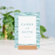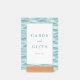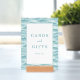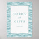 This wedding tabletop sign features a serene and elegant design with a calming blue wave pattern as the background, creating a tranquil oceanic theme. The central white space is framed by a light blue border, highlighting the sophisticated serif typography that reads "Cards and Gifts" followed by "Thank You." The minimalist style focuses on clarity and simplicity, making it perfect for expressing gratitude at your special event. The soothing color palette and modern aesthetic evoke feelings of peace and appreciation, ideal for enhancing the ambiance of your celebration.