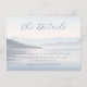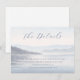 This wedding enclosure card features a serene landscape with soft, muted blues and grays, creating a calming and elegant atmosphere. The design showcases a tranquil body of water reflecting the sky, with layered mountain silhouettes in the background, enhancing depth through atmospheric perspective. Elegant script typography adds sophistication to the layout, which is balanced with ample negative space for a minimalist feel. Perfect for conveying details about your special day, this card evokes a sense of peace and anticipation, making it ideal for weddings or formal events.