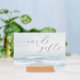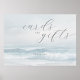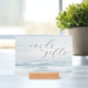 This wedding tabletop sign features a serene beach scene with gentle waves and soft blues, creating a calming oceanic atmosphere. The design includes elegant script typography for "cards and gifts" and a simple sans-serif font for "THANK YOU," conveying sophistication and gratitude. The minimalist style focuses on tranquility, making it perfect for expressing thanks in an understated yet refined manner. Ideal for weddings or special events, this sign adds a touch of elegance to any setting.