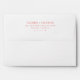This wedding envelope features a minimalist design with centered text on a clean white background, creating an elegant and contemporary look. The soft coral pink color palette adds a subtle touch of warmth, while the modern sans-serif font ensures clarity and sophistication. Perfect for couples who appreciate understated style, this design focuses solely on typographic elements, offering customizable fields for personalization without any additional graphics or motifs. Its calm and refined mood makes it ideal for weddings that celebrate simplicity and grace.