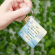 Custom message or quote keychain with your message printed on an oil painting depicting a sunrise at sea with clouds and calm waves.
