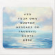 Custom message or quote mousepad with your message printed on an oil painting depicting a sunrise at sea with clouds and calm waves.