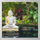Sit, relax and be calm. Claim serenity with this tropical poster where this white Buddha statue is sitting in a lotus position.