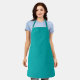 Great color and even though I ordered the kid size, it covers well enough to use during the holidays. I am not a big woman and prefer a shorter apron. I stand 5"6" and the length of the garment goes to mid-thigh. The tie straps fit well at my waist and even though there is no neck strap adjustment, the opening is plenty big enough. I am happy with the size and fit. I am sharing my apron with my 10 year old grandson, too! The color is vibrant and looks good, as shown on the website. The stitching looks strong and reinforced. Photographed is front side and back side of the apron, reinforced straps and coloring. My phone camera may not be the best at showing the details.