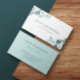 Modern and crisp business card in white with leaves in different hues of teal for a therapist, psychologist, or similar.