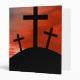 Simple black silhouette of calvary with a red sky setting. Image available on various gifts and products.