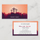 Make a bold statement of faith with this vibrant Christian business card featuring a striking silhouette of the three crosses at Calvary against a warm sunset. This double-sided template offers a professional layout for church contact information, social media, and web addresses. Ideal for pastors, evangelists, and ministry leaders, this design beautifully balances the power of the Gospel with a modern, eye-catching aesthetic.