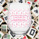 Raise a glass to fun game nights with this stemless wine glass featuring the playful saying “Came for the Tiles, Stayed for the Wine”. The design includes a chic pattern of pink cocktails tied with ribbons and topped with mahjong tile stirrers, blending grandmillennial elegance and coquette-inspired flair for a party-perfect look.